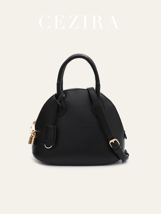 Women Elegant Fashion PU Leather Top-Handle Dome Bag Metal Lock Decoration Handbag Adjustable Long Strap Cross Body Bag Daily