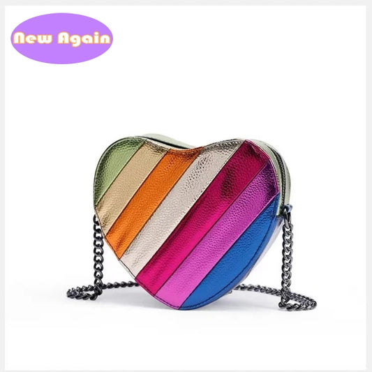Woman's Rainbow Color Crossbody bags Girls Cool Block Heart Shape Shoulder Bags Teenagers Punk Crossbody Bag money pouch NA284