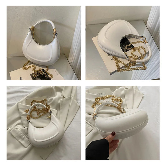 Women Fashion Versatile Shoulder Bag Underarm Bag Chain Crossbody Bag Solid Color PU Leather Handbag