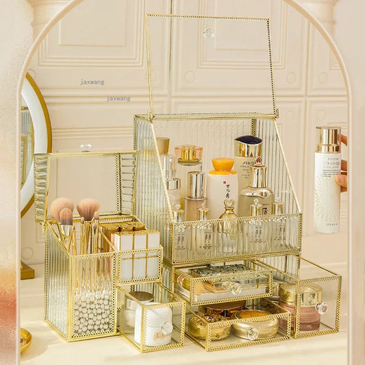 Women Wedding Anniversary Necklace Storage Box Dustproof Lipstick Jewellery Organizer Desktop Cosmetic Drawer Display Shelves f