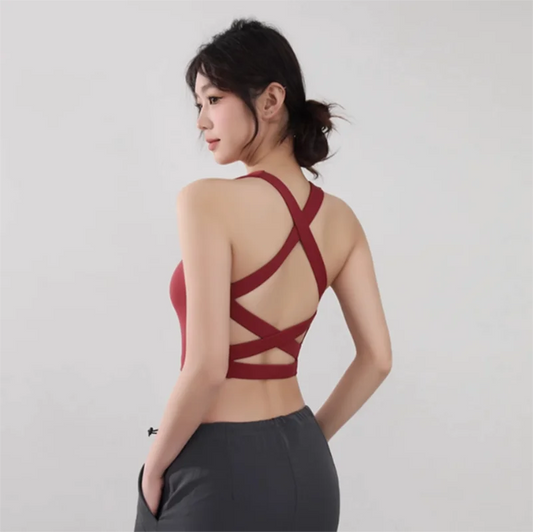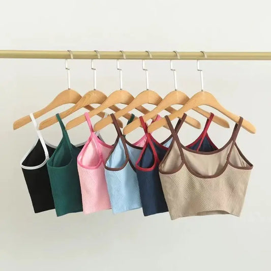 Women's Fixed Cup Yoga Sports Bra Contrasting Embroidery Small Suspender All-Season Fitness Bra Comfortable Supportive Gym Top