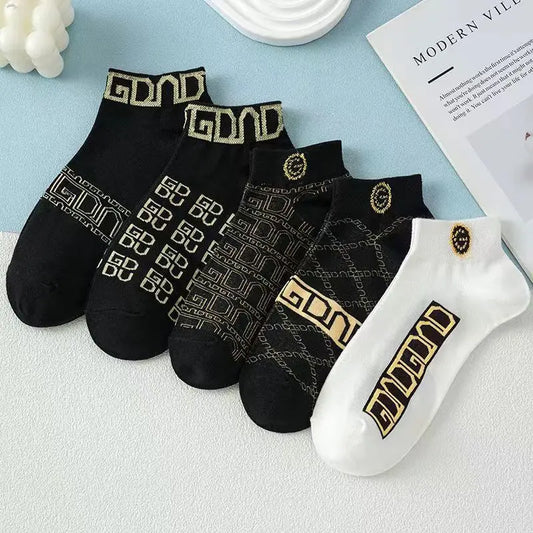 5 Pair Men's Summer Thin Socks Absorbent Sweat Breathable Anti-odor Light Luxury Boat Socks Summer Shallow Mouth Short Socks