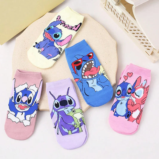 5 Pairs of Fashionable and Exquisite Cartoon Anime Stitch Pattern Women's Knitted Socks Cute and Funny Summer Casual Men's Socks