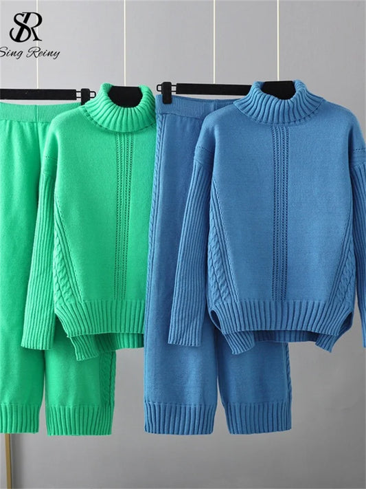 Women's Turtleneck Knit Sweater and Wide Leg Pants Set