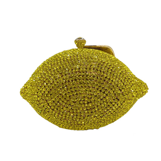 Yellow Lemon Shape Crystal Evening Bag Clutches Bridal Luxury Diamond Clutch Purse Wedding Party Rhinestone Handbag Prom Pouch