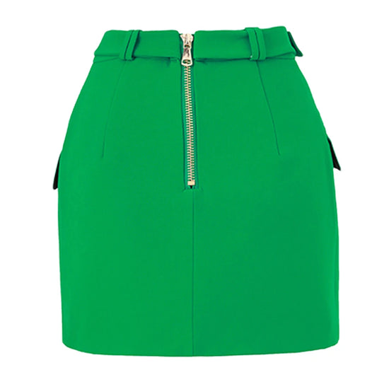 Y2K Summer Green/Black/White Candy Color Women Mini Straight Slit Skinny Skirt with Belt High Quality