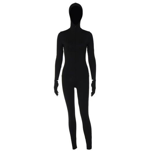 Zipper Hooded Slim Fit Long Sleeve Finger Stall Jumpsuit