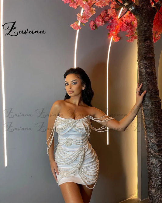 Zavana Fashionable Beadings Mini Sheath Homecoming Dress for Girl Scoop Neck Cocktail Ceremony Party Robe De Fiesta Customized