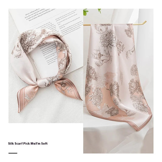 53Cm spring and summer new temperament women's 100% mulberry silk printed silk scarf fashion versatile high-end scarf shawl