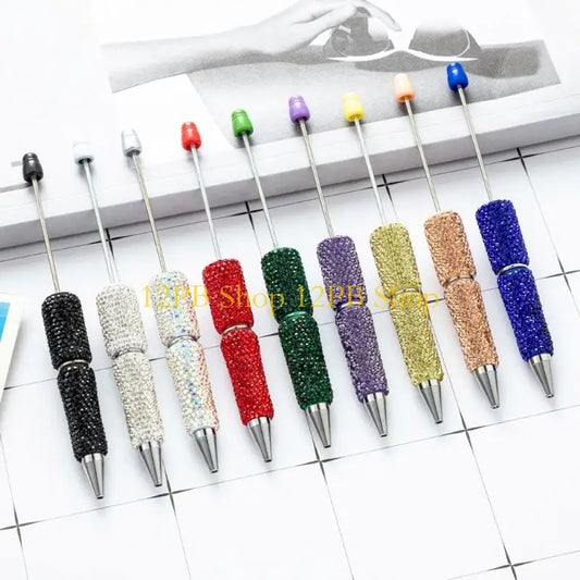 12PB 4 Pcs Rhinestones Bead Pen Beadable Ballpoint Pen Smooth Writing Pen 1.0mm Pen Rollerball Pen School Supplies