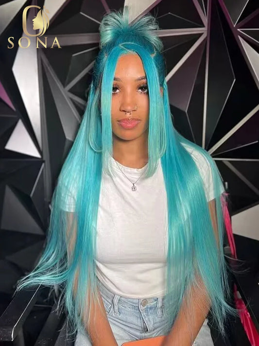 13x6 Light Blue Straight Lace Front Human Hair Wigs Lake Blue Body Wave 13x4 HD Transparent Colored Lace Frontal Wigs Prepucked