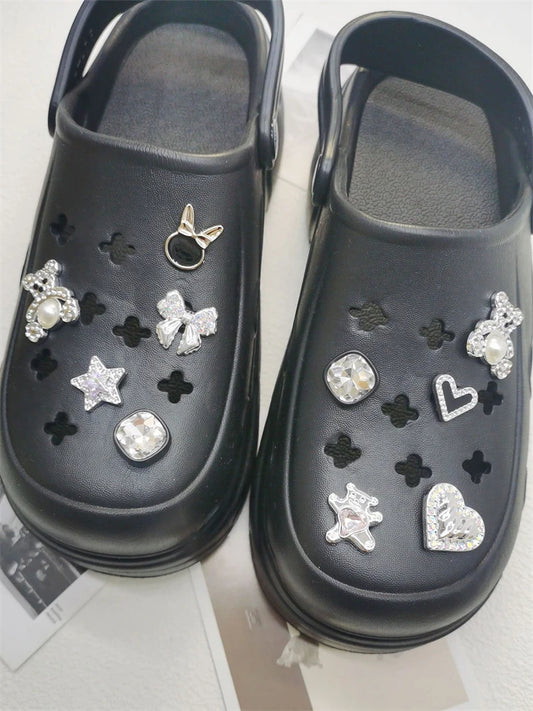 10PCS Shoe Charms ABS Bow Decorations For Sandals Luxury Rhinestone Bear Design Accessories 2024 Women Diy Bling Clog Ornaments