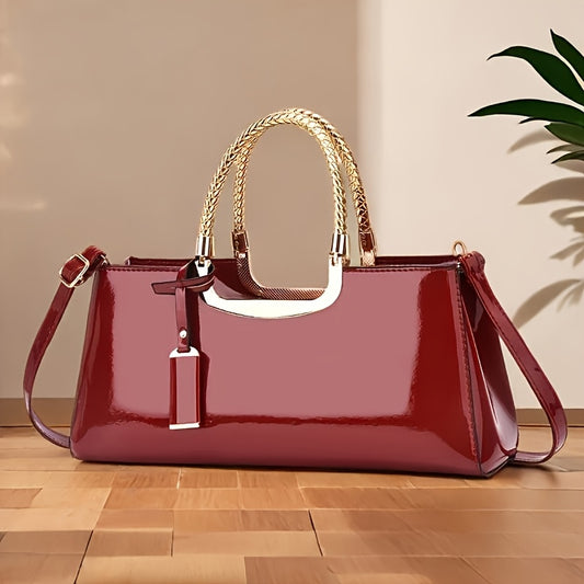 1pc Elegant Black Patent Leather Evening Handbag - Golden-Tone Hardware & Top Handle, High-Quality for Weddings, Parties, Vacations - Women's Fashion Purse