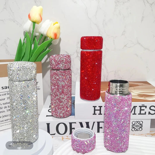 150ml/280ml/480ml Stainless Steel Thermos Bottle Rhinestone Vacuum Flask Portable Insulated Cup Keep Hot Tumbler Water Bottle