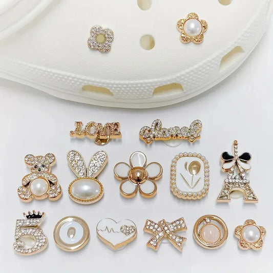 14Pcs Chic Golden Bear & Bunny Charms Bling Shoe Charms For Women Fashionable Diy Detachable Shoe Flower Clips Party Favor