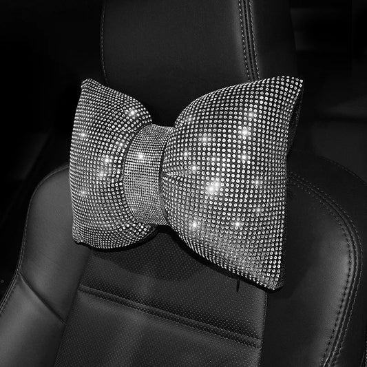 1PC Diamond Crystal Bowknot Car Neck Pillow Rhinestone Auto Headrest Seat Support Waist Pillows Bling Car Accessories for Women