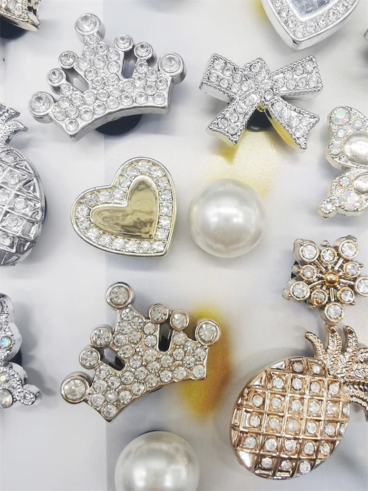 16PCS Rhinestone Pineapple Shoe Charms ABS Bling Crown Shoes Decorations Accessories DIY Lovely Silvery Shoe Clips Fit Sandals