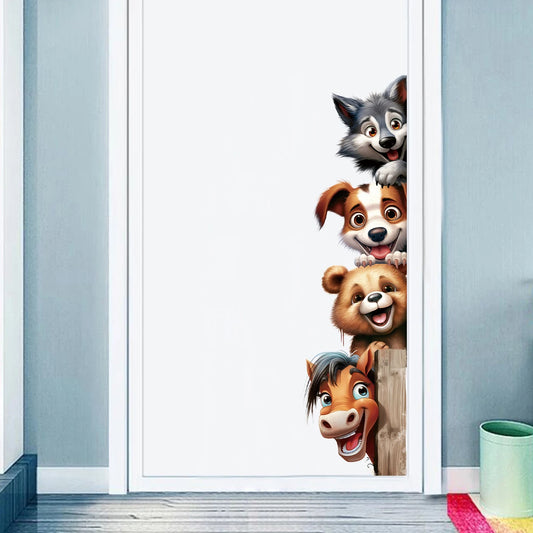 1pcs Cartoon Cute Animals Removable Door Stickers Kids Room Decoration for Bedroom Home Decor PVC Wall Decals Living Room