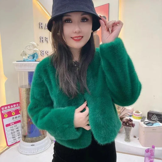 2024 Autumn and Winter New Rabbit Hair Imitate Fur Coat Women's Mink Fleece Coat Short Versatile Mesh Red Plush Coat Quilted Coa