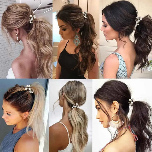 Precio habitual $9.99 CADPrecio de oferta $9.99 CADPrecio unitario / porFashion Pearl Crystal Black Hair Ties For Women Girls Summer No Slipping Elastic Beaded Ponytail Holders Hair Ropes Scrunchies