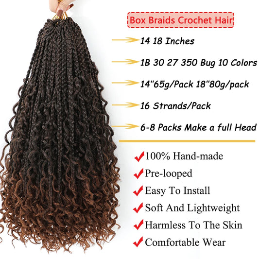 Jayfans Crochet Goddess Box Braids With Curly Ends Bob Bohemian Box Braids Crochet Hair 1B Blue Purple Pink Ombre Braiding Hair