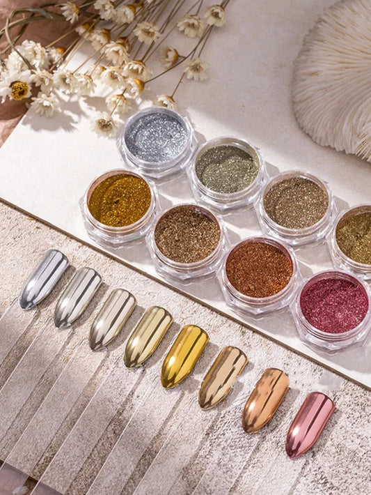 5/8 Box Set Magic Mirror Powder, Glitter Powder Metallic Pigment Nail Art Decorations For Nail Charms Nail Gems