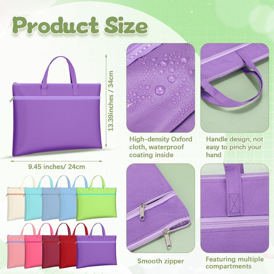 10 Pieces 10x13 in Zipper Pouch with Handle A4 Waterproof Document Zipper Bag Double File Storage Foldable Bag Multicolor Suitable for Office Travel Carry Puzzle Project