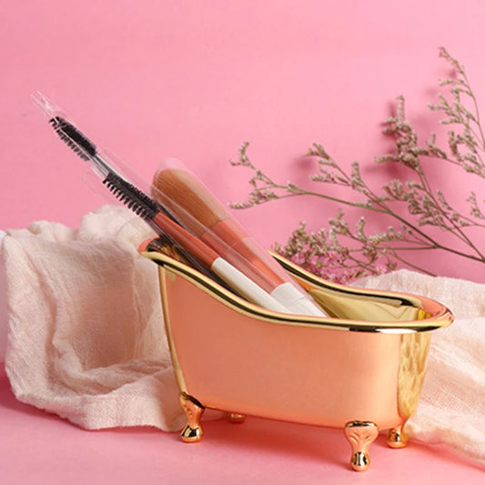 Mini Bathtub Soap Jewelry Storage Box Makeup Organizer Container Desktop Sundry Storage Case Gold Silver Sundries Storage Boxes