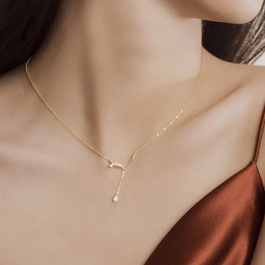 925 Sterling Silver Simple Water Drop Zircon Cute Necklace Trendy Charm Pendant For Women Exquisite Jewelry Accessories