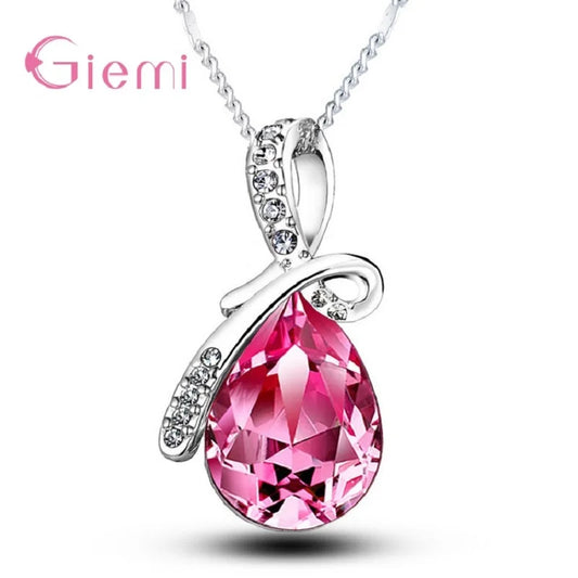 925 Sterling Silver Water Drop Pendant Necklace Quartz Crystal Charm Necklace For Women Fashion Jewelry Gifts