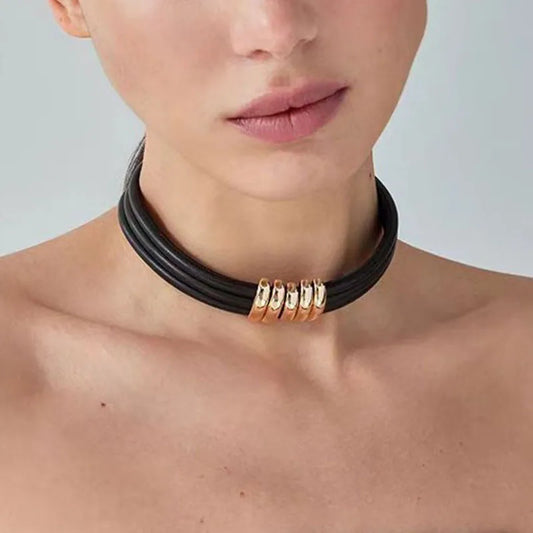 Brown leather choker necklaces for women wide leather choker necklace y2k gothic jewelry 2000s aesthetic jewelry