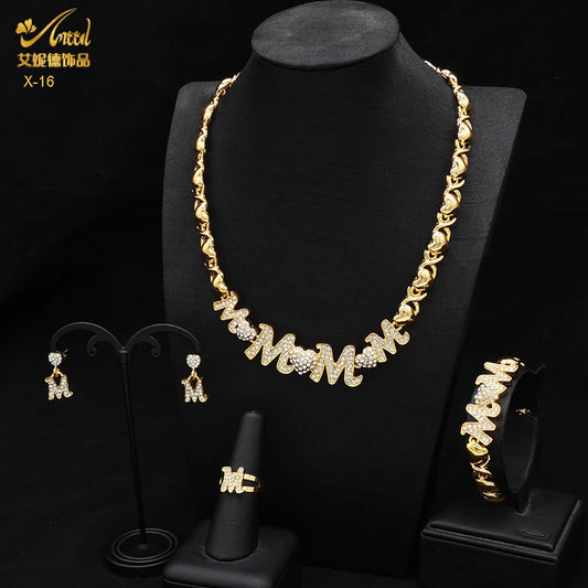 ANIID XOXO Heart Women Jewelry Necklace Set 18K Gold Color Bridal LOVE Rhinestone Wedding Necklace Earrings Set Party Gift