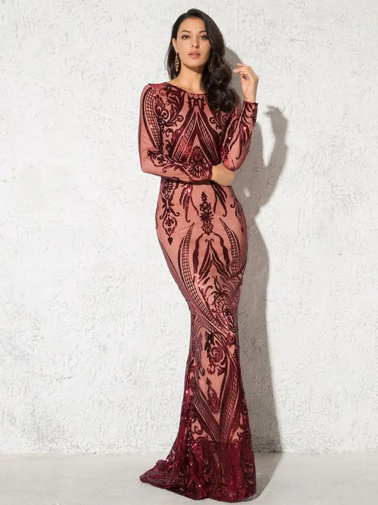 Missord Black Sequin Bodycon Prom Dress Women O Neck Long Sleeve Gorgeous Reflective Party Dresses Elegant Evening Gown
