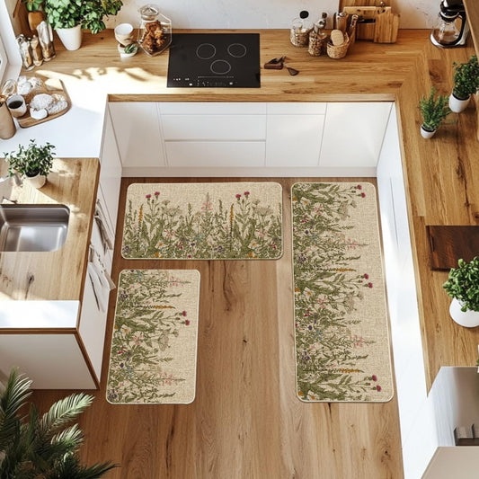 Floral Kitchen Mats Set of 2 - Non-Skid Design