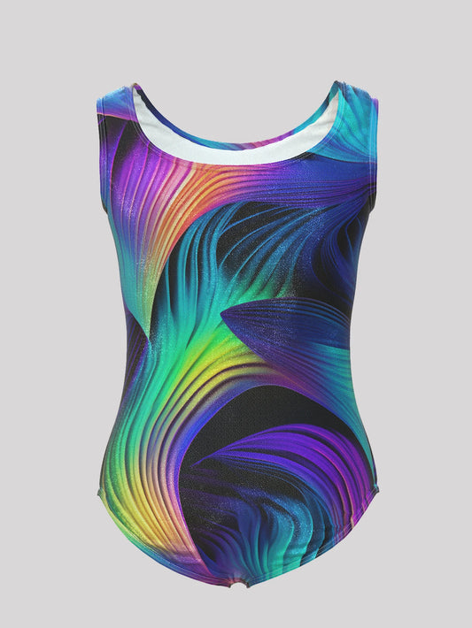 Girls Gymnastics Leotards Todder Colorful Line Design SleevelessTank Leotard Kids Dance Activewear Random color