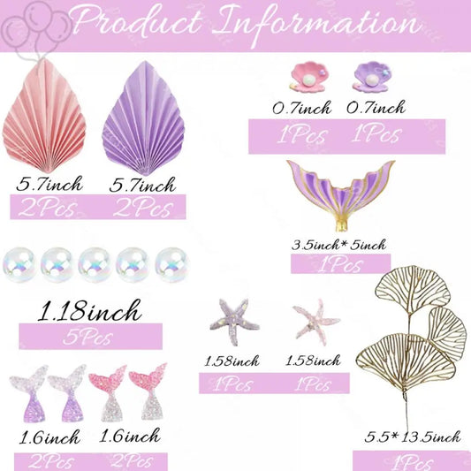 19pcs Mermaid Tails Cake Topper Big Mermaid Seastar Shells Cake Decor for Baby Shower Wedding Birthday Baptism Party Supplies