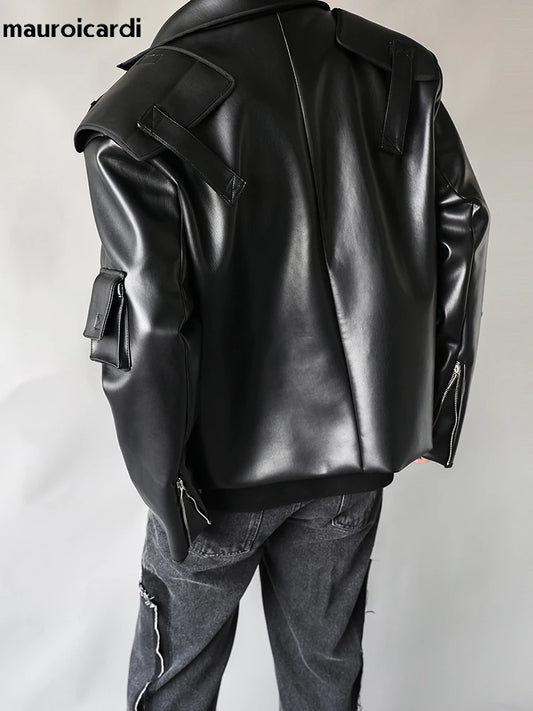 Precio habitual $159.99 CADPrecio habitualPrecio unitario / por$309.99 CADPrecio de oferta $159.99 CADMen's Black Faux Leather Oversized Jacket