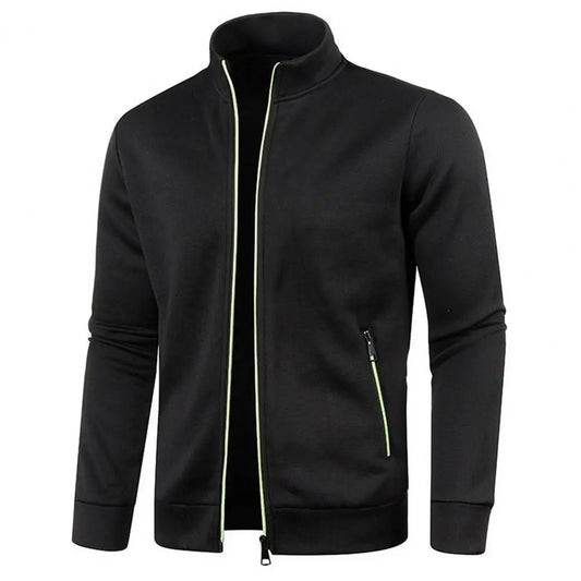 Men Fall Winter Sweater Coat Zipper Pockets Knitted Thin Cardigan Stand Collar Long Sleeves Solid Color Daily Wear Men Jacket
