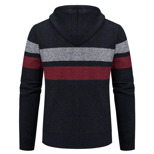 Men's Striped Cardigan Winter Sweater Fleece Jumper Hooded Clothes Harajuku Casual Windbreaker Korean Knit Jacket Coat