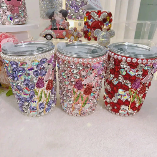 Precio habitual A partir de $126.99 CADPrecio habitualPrecio unitario / por$155.99 CADPrecio de oferta A partir de $126.99 CADRhinestones Stainless Steel Bling Cups With Straw Lid Coffee Mugs Juice Cold Drink Water Bottle Crystal Diamond Thermos Tumbler