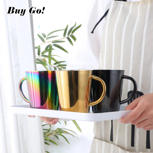1/2PCS Double Wall Stainless Steel Coffee Mug 300ml Portable Rainbow Cup Travel Tumbler Milk Tea Cups Double Office Water Mugs