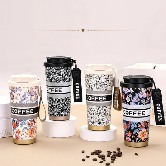 Steel Vacuum Straw Coffee Cup 500ml Double Wall Ice Cooler Home Coffee Car Vacuum Flask Printed