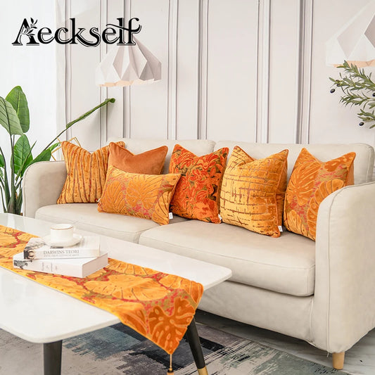 Aeckself Luxury Flowers Leaves Pattern Cut Velvet Cushion Cover Home Decor Orange Throw Pillow Case Pillowcase for Couch Bedroom