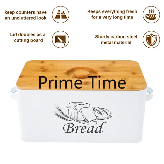 Portable Style Metal Bread Bin Box Food Storage Containers with Bamboo Lid for Home Kitchen & Outdoor Store Food