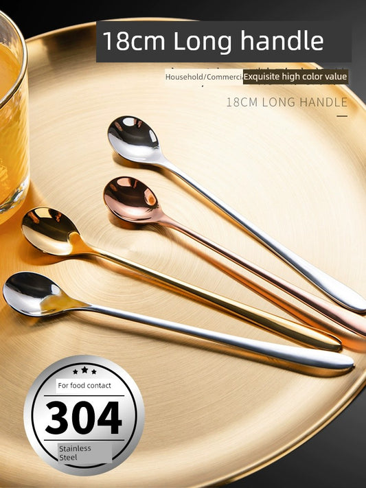 304 Stainless Steel Long Spoon For Home Ins Golden Delicate Coffee Stirring Small Spoon Good-looking Dessert Spoon