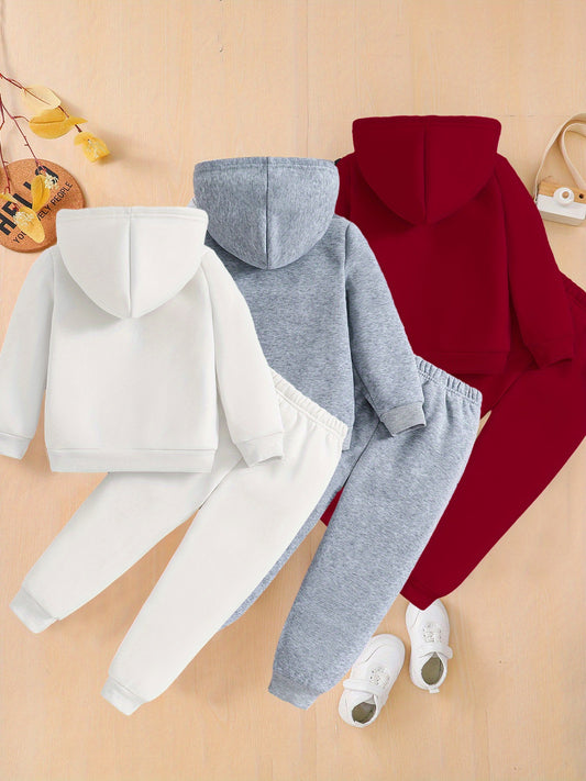 3 ensembles de lettres et de dessins animés pour filles, sweat à capuche à manches longues élégant et confortable pour garçons et filles unisexes et pantalons de survêtement de couleur unie pour l'automne et l'hiver