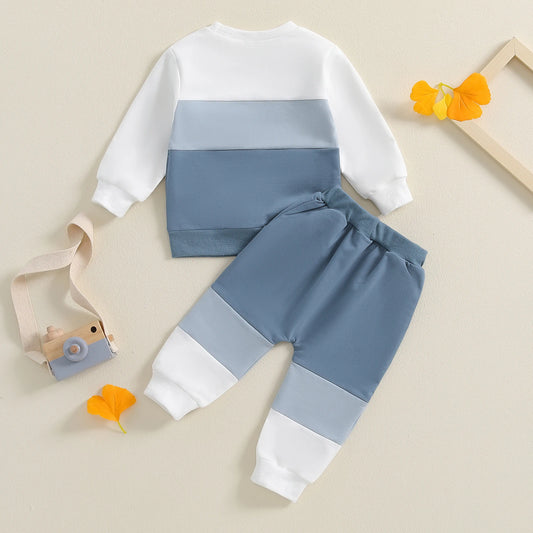 Fashion Toddler Baby Boy Contrast Color Outfits Fall Long Sleeve Crew Neck Pullover Elastic Waist Pants Tracksuit Clothing Suit