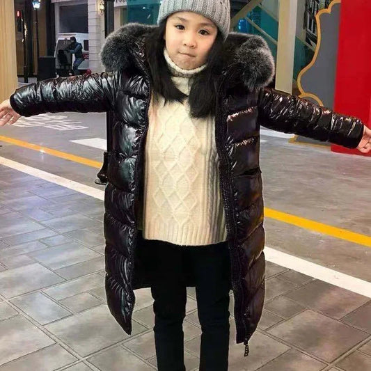 Fashion Winter Girls Coats 2024 New Teens Boys Down Jacket Real Fox Raccoon Fur Collar Kids Long Clothing Children Parka XMP375