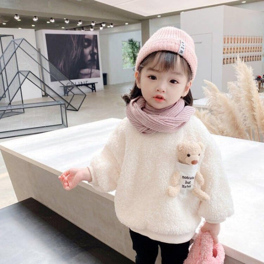 Girls Autumn And Winter Outfit Fur Coat Plus Velvet Thickening