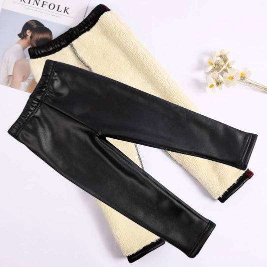 Girls Fleece Leather Pants Outer Wear Children's Velvet Padded Leggings